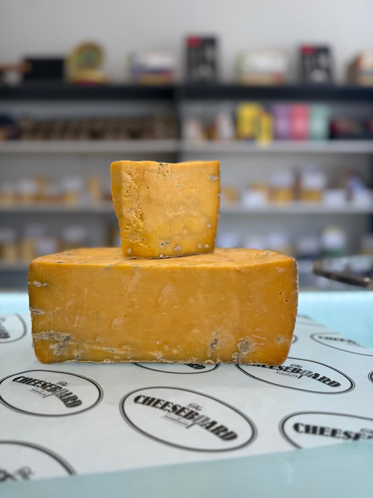 Produced by hand by Ben and Sam Spruce in Wensleydale, to a traditional, cloth-bound recipe. It is then pierced and aged for three months which allows the blue veins to appear.